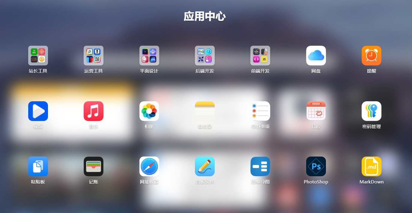 还把办公和设计常用的软件也整合到里面了,比如会议白板工具、思维导图、Photoshop、Markdown编辑器等,打开就能用,不用安装,都是日常办公常用的效率工具。