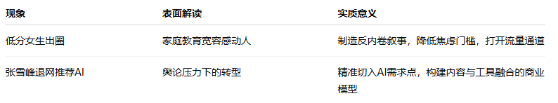 一边是底层家庭的“精神胜利法”在被资本流量挖掘,另一边是知识型IP主动拥抱AI工具降低信任门槛。