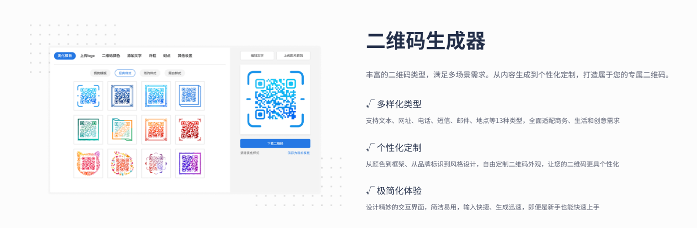 丰富多样的二维码类型,满足多元营销场景