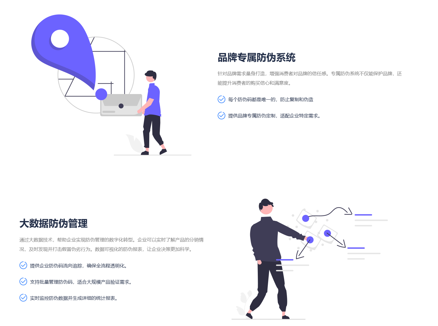这个平台为何如此值得信赖?首先,定制化解决方案是一大亮点。针对不同企业的需求,平台提供专属的防伪码设计与验证流程定制服务,真正做到 “因材施教”。其次,数据驱动的管理模式助力企业洞察市场,优化供应链管理,提升运营效率。平台深耕防伪领域多年,凭借行业领先的技术和丰富经验,已成功帮助数百个品牌建立高效防伪系统,品质有保障。而且,从系统部署到日常维护,平台提供全方位的技术支持服务,让企业毫无后顾之忧。